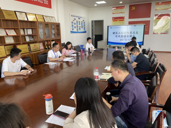 根据厅党组深化干部队伍作风整顿工作要求和《四川水利职业技术学院深化干部队伍作风整顿实施方案》,建筑工程学院党总支于2022年3月16日在党员活动室召开作风整顿专题会。会议由建筑工程学院党总支书记高剑飞主持,全体党员参会。