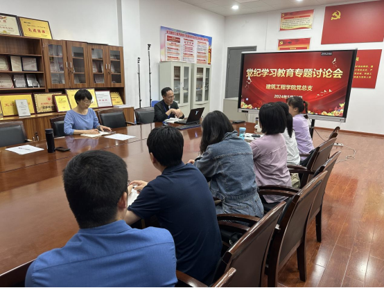 5月29日下午,建筑工程学院党总支在1510会议室开展党纪学习教育专题讨论会,会议由建筑工程学院党总支书记高剑飞主持,全体党员参加。