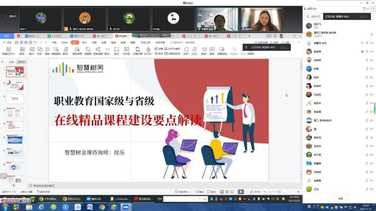 随后,李万渠组织全体教职工参加集体教研活动暨课程建设培训,全体教师共同学习《四川水利职业技术学院教研活动相关要求》《关于全面推进我校信息化教学工作的通知》《职业学校学生实习管理规定》等相关文件。智慧树金课建设咨询师徐乐以《精品在线开放课程建设》为主题,从职教在线课程申报文件解读、建课流程、课程建设经验分享和优秀案例展示,对课程建设的具体举措进行了深入浅出的讲解。与会教师深受启发、受益匪浅,就自身课程建设遇到的实际问题,与专家们进行互动交流。