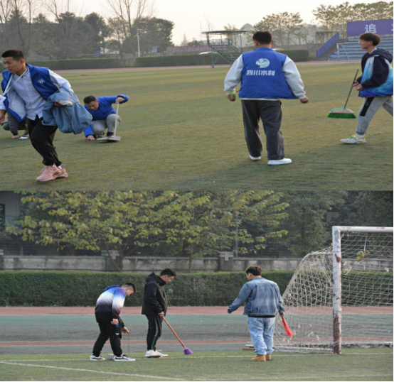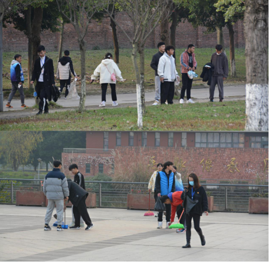 活动中,同学们有序分工,在各自负责区域相互配合、密切协作,对羊马校区李冰广场、运动场、教学楼、实训楼、食堂周边等区域进行垃圾清扫并做好分类。他们不怕脏、不怕累,持续劳动近一个小时,为寒风刺骨的冬日带去一抹暖意,给学校营造了干净整洁的校园环境。