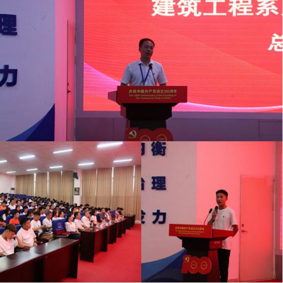 于建华副校长作讲话,他表示,团学工作承担着立德树人的重要职责,把团学工作做好,对学校“双高”建设和今后的发展至关重要。一是代表学校对受到表彰的先进个人表示祝贺,向建工系全体学管老师表示感谢,并向为系部团学工作发展做出贡献的老师致以敬意;二是广大师生应提高政治站位,深入学习习近平新时代中国特色社会主义思想,在充分学习的基础上,做到活学活用,在思想上、政治上、行动上同党中央保持高度一致;三是充分肯定了建筑工程系过去一学年在团学工作中的优异表现,希望系部师生保持好的经验和做法,从严、从细、从实抓工作,推动建工系团学工作实现新突破、展现新作为、谱写新篇章。