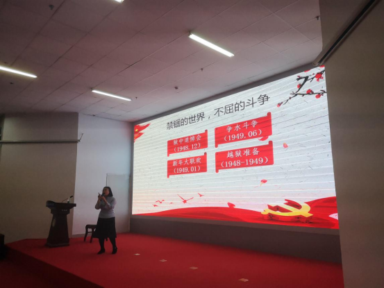 随后张妤老师为我们系的学生党员和入党积极分子以及学生干部带来了一场深情的关于红岩魂的“选择,从信仰出发”主题讲座。张妤老师通过《天生的叛逆者》《为了免除下一代苦难》《爱情之花悄然绽放》三个部分给我们介绍了刘国鋕、王朴、杨汉秀、陈然、许晓轩、许建业、江竹筠、李青林、齐亮、马秀英、王振华、黎洁霜等革命烈士的故事,将烈士们的光辉事迹娓娓道来,带领到场的听众们回到了70年前烽火连天的重庆,与烈士们一同经历那波澜壮阔的战斗岁月。