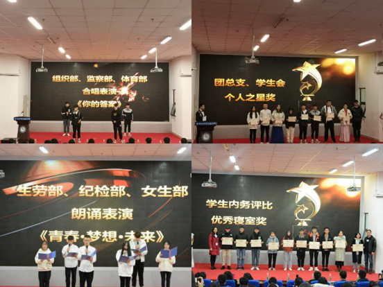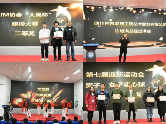 接下来,进入到颁奖和文艺表演环节。现场先后颁发了建筑工程系两委会个人之星、部门之星、建筑工程系优秀寝室、建筑工程系BIM协会“大禹杯”建模大赛和建筑工程系迎新运动会的奖项。陈旭红总经理代表“大禹杯”建模大赛赞助方,向获奖的学生表示了祝贺。而来自建筑工程系两委会各部门学生表演的节目,歌曲《你的答案》、诗朗诵《青春梦想•未来》和舞曲《惊鸿一面》,则将现场气氛带入了高潮,不时赢得阵阵掌声。