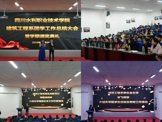 本学期的团学工作已进入尾声,为了更好地总结工作中的经验和不足,同时达到表彰先进、激励学生的目的,建筑工程系于2019年12月20日在学院图书馆学术报告厅召开了团学工作总结会暨学期颁奖典礼。建筑工程系党总支副书记高剑飞、建筑工程系副主任李万渠、四川柏慕联创工程技术服务有限公司总经理陈旭洪、建筑工程系团总支书记张浩然以及部分专任教师和辅导员出席了此次会议,生物工程系团总支书记和管理工程系团总支书记应邀列席了会议。参加此次会议的人员还有建筑工程系两委会全体成员、各班班长、团支书和各项获奖学生。