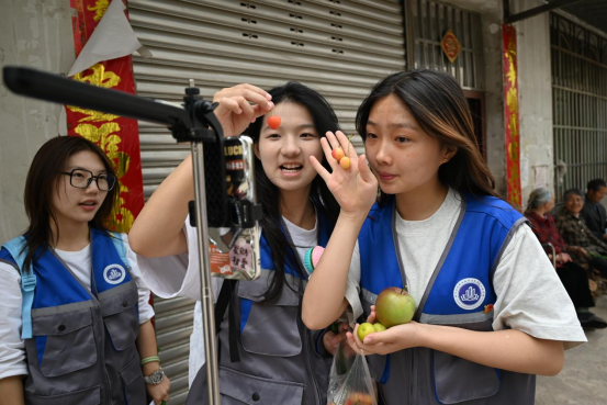 本次“三下乡”活动分为直播、调研、宣传三个版块。沿着松江村的主要道路,直播组沿途用校团委抖音账号开启了直播,简要介绍了汉源县种植车厘子、花椒的历史,并展示了当地农产品的生长环境及形状特征。随后,直播组来到村委会,邀请西江村张书记对该村村情及农产品做详细介绍,使大家对西江村的车厘子和花椒有了进一步的认识,吸引了社会各界对西江村发展的广泛关注。