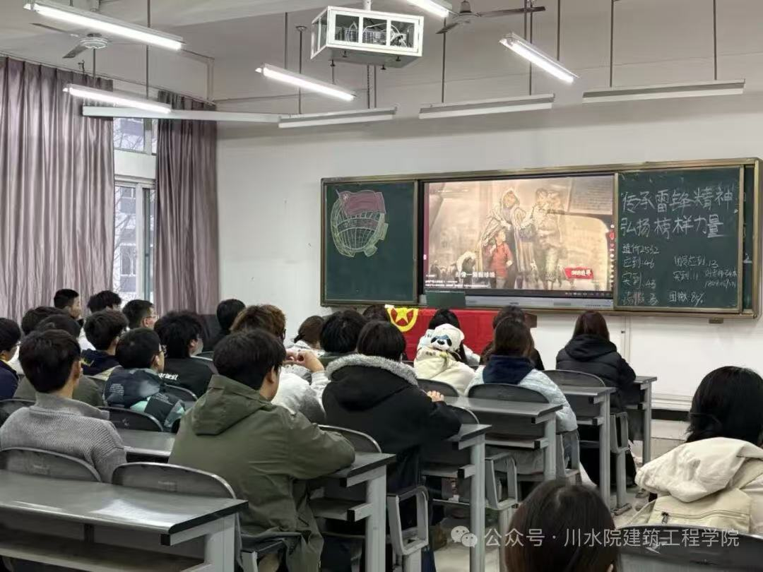 在“学雷锋”主题团日活动中,大一大二各班团支部积极响应,组织团员青年集中观看雷锋电影经典片段,通过生动的影像画面重温英雄事迹;同时开展雷锋生平事迹分享会,同学们用真挚的语言讲述雷锋同志的感人故事,让大家直观感受雷锋精神的深刻内涵,在沉浸式学习中厚植奉献、友爱、互助、进步的价值追求。