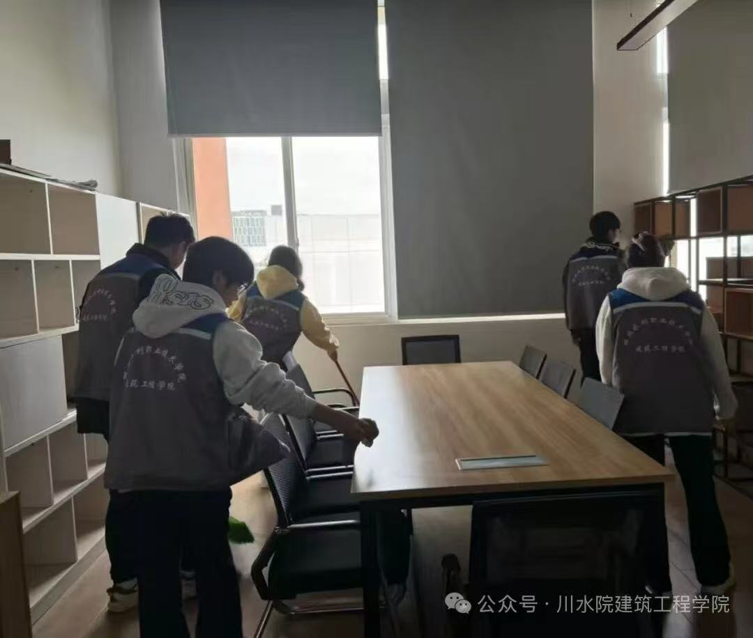 在“美化校园环境”劳动教育活动中,学院组织40余名青年志愿者奔赴实训楼教室及会议室开展大扫除。志愿者们分工明确、配合默契,认真清扫教室角落、擦拭桌椅门窗、整理公共区域卫生。大家不怕脏、不怕累,以饱满的热情投入劳动,用双手为校园营造了整洁干净的育人环境,将雷锋精神融入具体行动,让劳动教育与志愿服务深度融合。