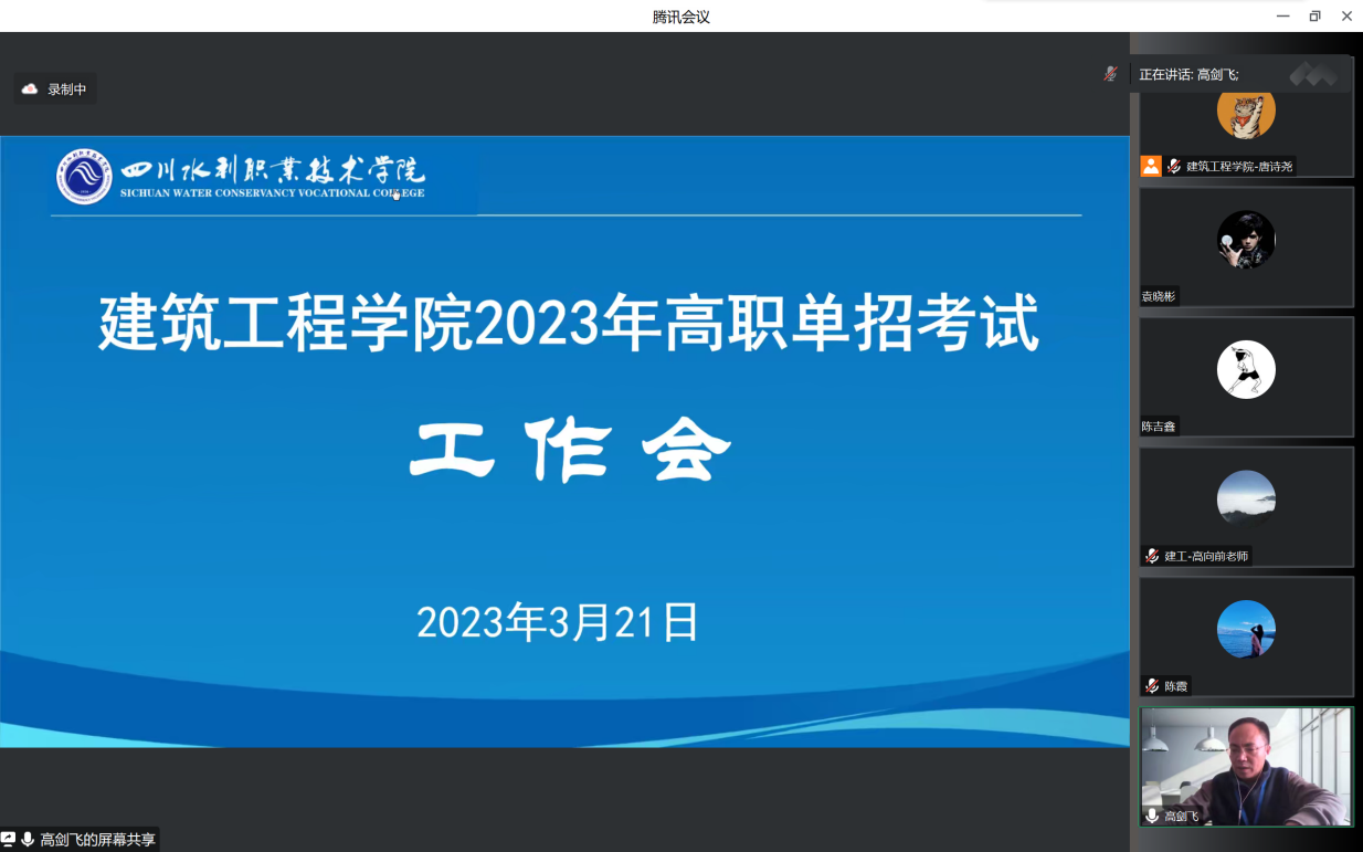 3月21日下午,建筑工程学院召开2023年高职单招工作会视频会议。会议由建筑工程学院党总支书记高剑飞主持,全体教职工参加。