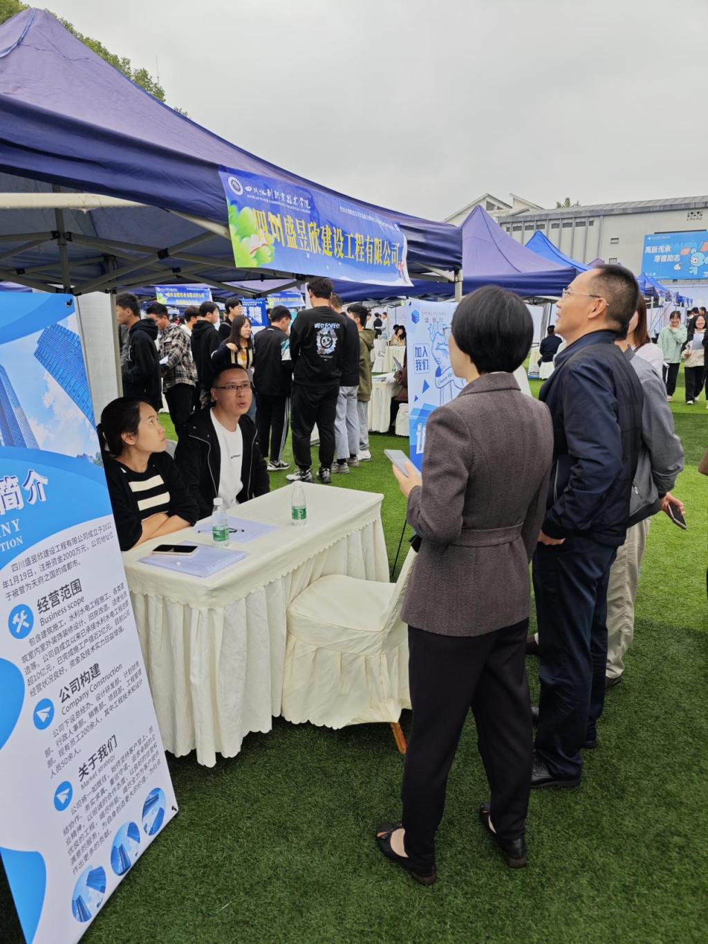 2023年10月18日,2024届毕业生双选会在都江堰校区运动场如期举行,本次双选会共邀请到161家用人单位参会,超过27家面向建筑工程学院毕业生进行招聘。学院党总支书记高剑飞、院长李万渠、副书记向东带领各专业带头人和毕业班辅导员,现场开展访企拓岗工作。