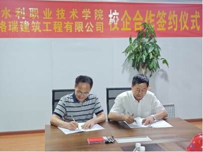 格瑞建筑总经理李建辉介绍了公司的发展历程、经营现状和人才需求,高剑飞详细介绍了学校和学院的发展历史、专业建设、人才培养等方面的情况。随后双方以资源共享、优势互补、合作共赢为目标,就人才需求、技能培养、实习实训、学生就业等方面进行了深入的沟通和交流。双方一致同意先在师资技能培养、学生就业方面开展校企合作,并正式签署了《“双师型”教师培养培训基地协议书》。