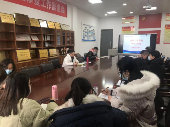2月20日,建筑工程学院在1510会议室召开学生工作会和学生就业推进工作会,会议分为两段开展,由党总支书记高剑飞和副书记张蕾主持,学院学生管理干事、就业干事、全体专、兼职辅导员参加会议。