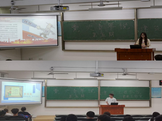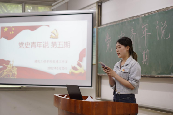 为进一步学习加强青年学生对党的知识学习,学党史、知党情、强党性,促进同学们明确时代使命,弘扬伟大中国梦,建筑工程学院学生党支部党建工作室于2022年5月25日开展了党史青年说(第五期)线下活动。本次活动由党建工作室6名同学主讲,第59期和第60期入党积极分子参加活动。