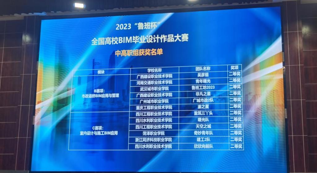 本次比赛共计七个赛项,经过前期初赛选拔,我院参加的C赛项—室内设计与施工BIM应用赛项(中高职组)有两支队伍进入总决赛。经过决赛现场激烈的答辩比拼,综合初赛成绩总得分排名,最终我院两支队伍均荣获二等奖的好成绩。